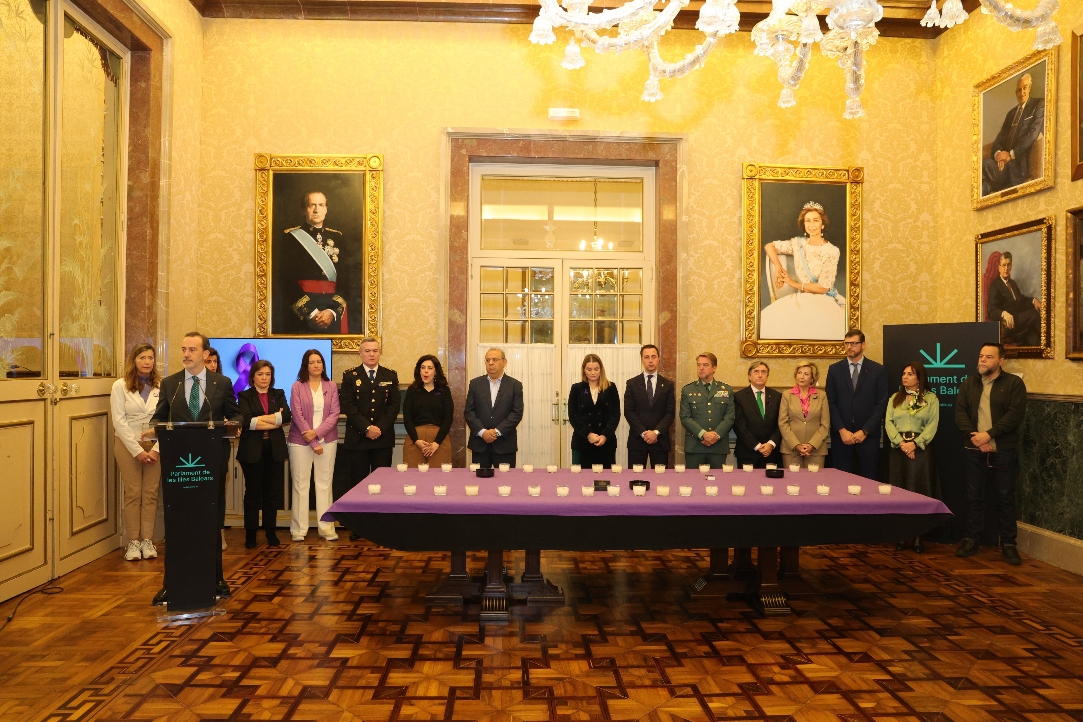 L'acte ha estat presidit per Gabriel Le Senne, president del Parlament, qui ha reivindicat la dignitat, la igualtat i la llibertat de totes les dones, i ha destacat que cal determinar les causes de la violència cap a les dones i "identificar els perfils que més es repeteixen entre els agressors". A l'acte també hi han assistit portaveus i diputats de tots els grups parlamentaris i altres autoritats de les Illes Balears.